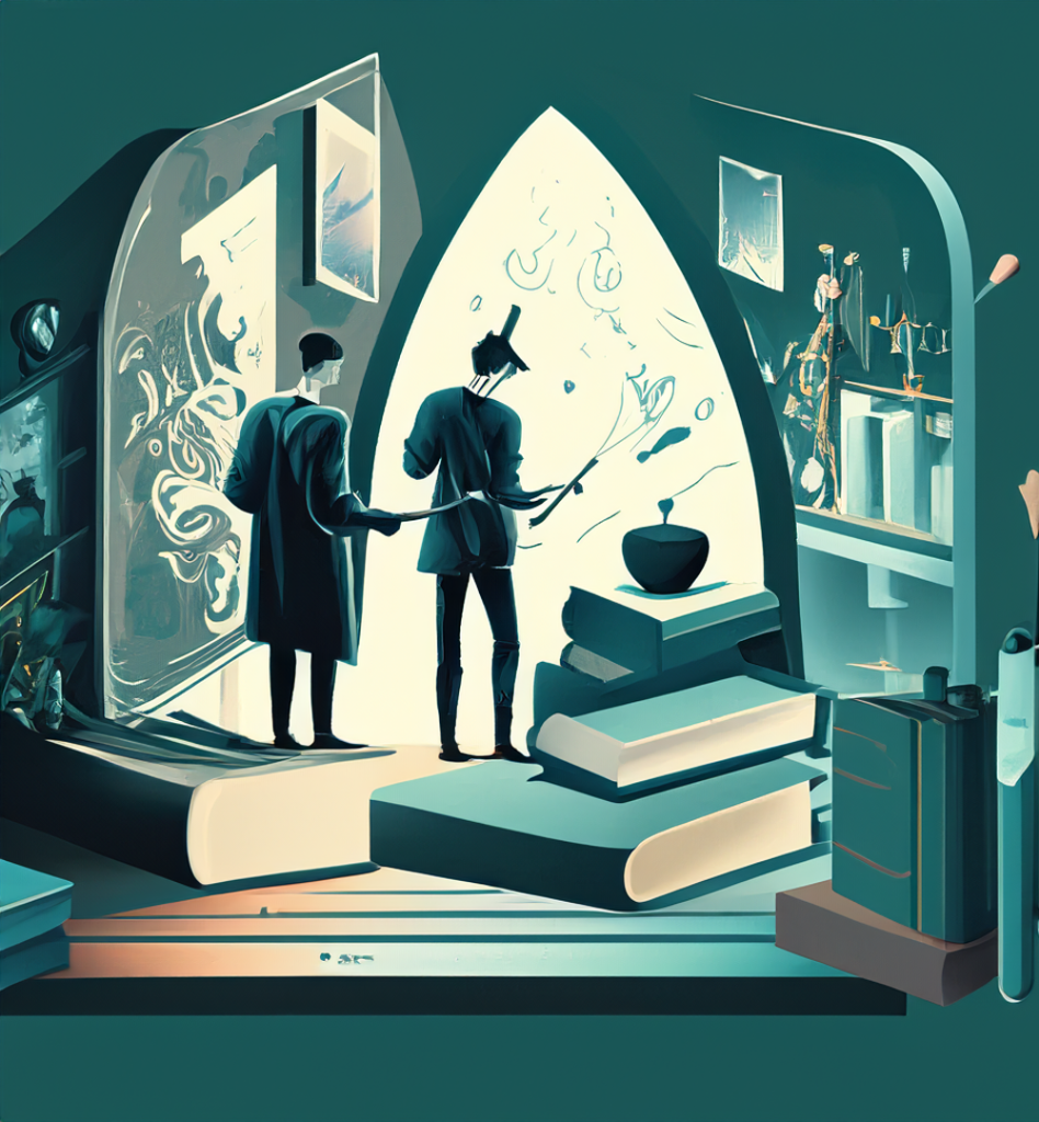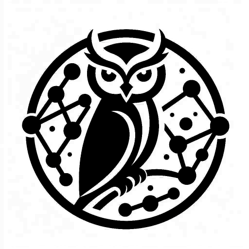 本学会のロゴデザインには知恵を象徴する「ミミズク」と星と星を繋ぐネットワークが描かれています。既存分野の中でいつの間にかに分断を生んでしまう「帳」を知恵と、領域を超えたネットワークの力で超えていきたいという思いを込めています。芸術によって帳を上げることが私たちの想いです。このロゴは、学会の理念をスクリプトとし、生成AIによって作成されました。